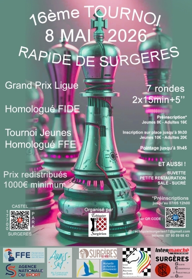 16ème édition du Tournoi rapide de Surgères (GPL Nouvelle Aquitaine - ZONE PCH) + Tournoi jeunes |