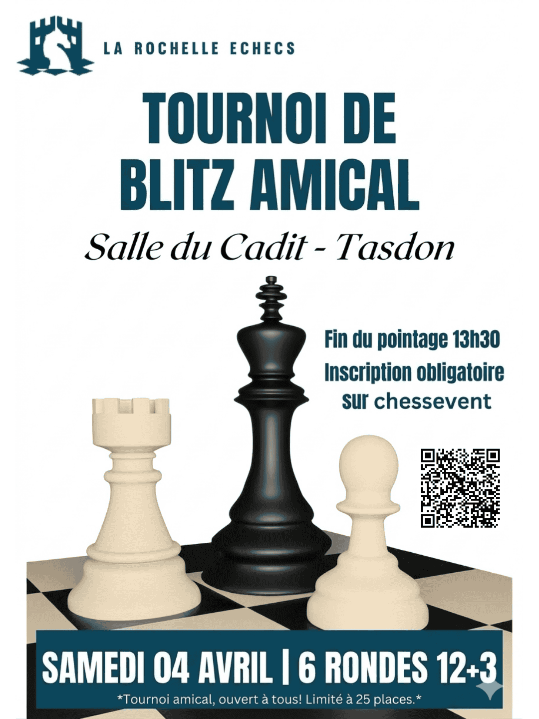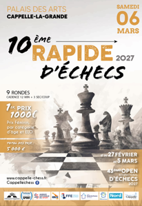 ![]() Les Rapides de Checy 2026 : Tournois Rapide FIDE et -1400 du dimanche |