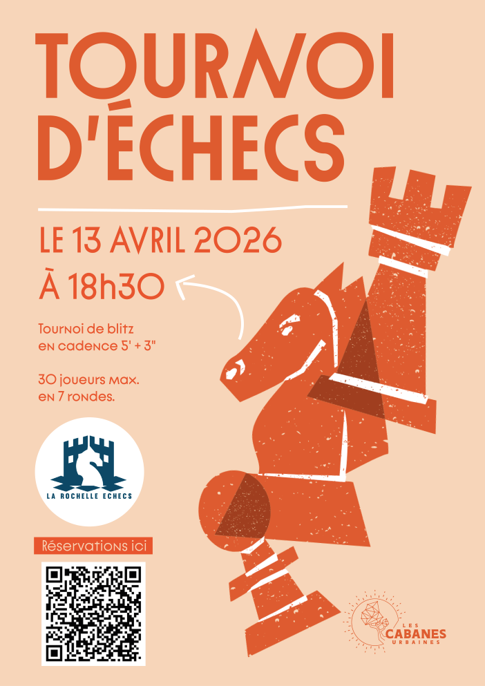 ![]() Tournoi de Blitz aux Cabanes Urbaines à La Rochelle 7 rondes en 5mn+3s |